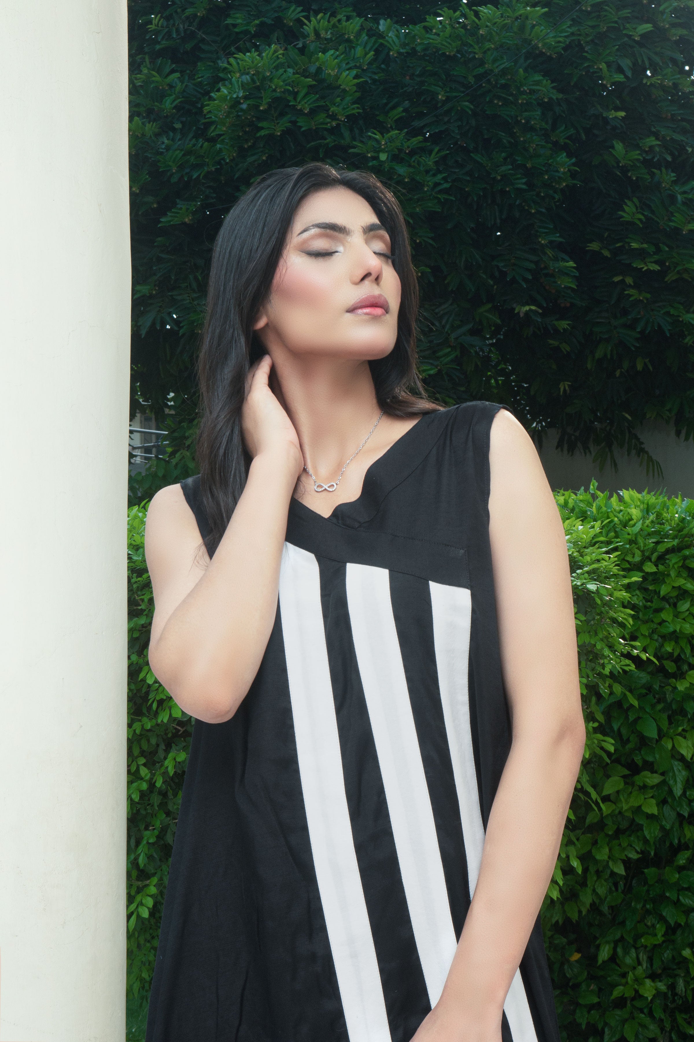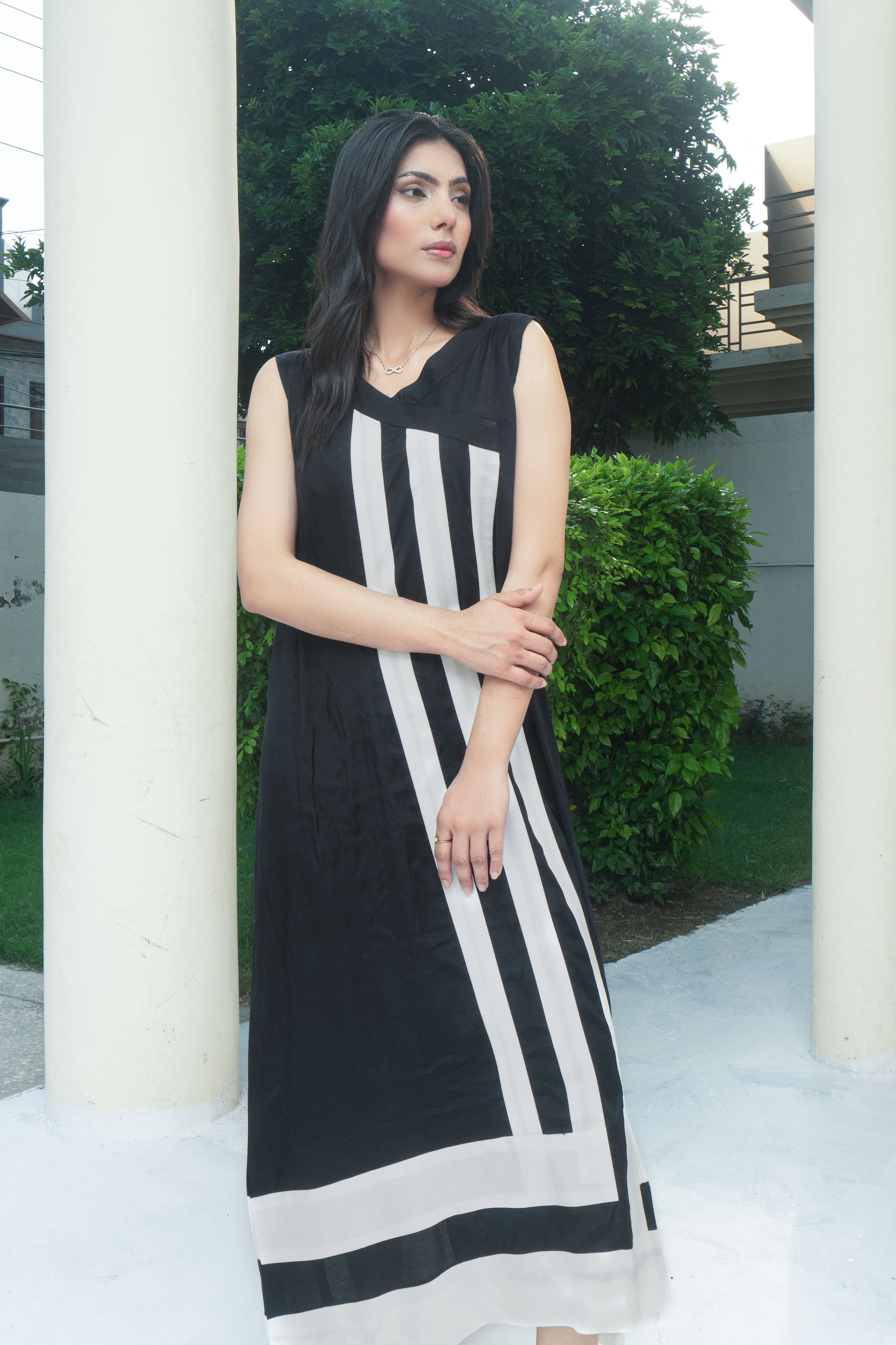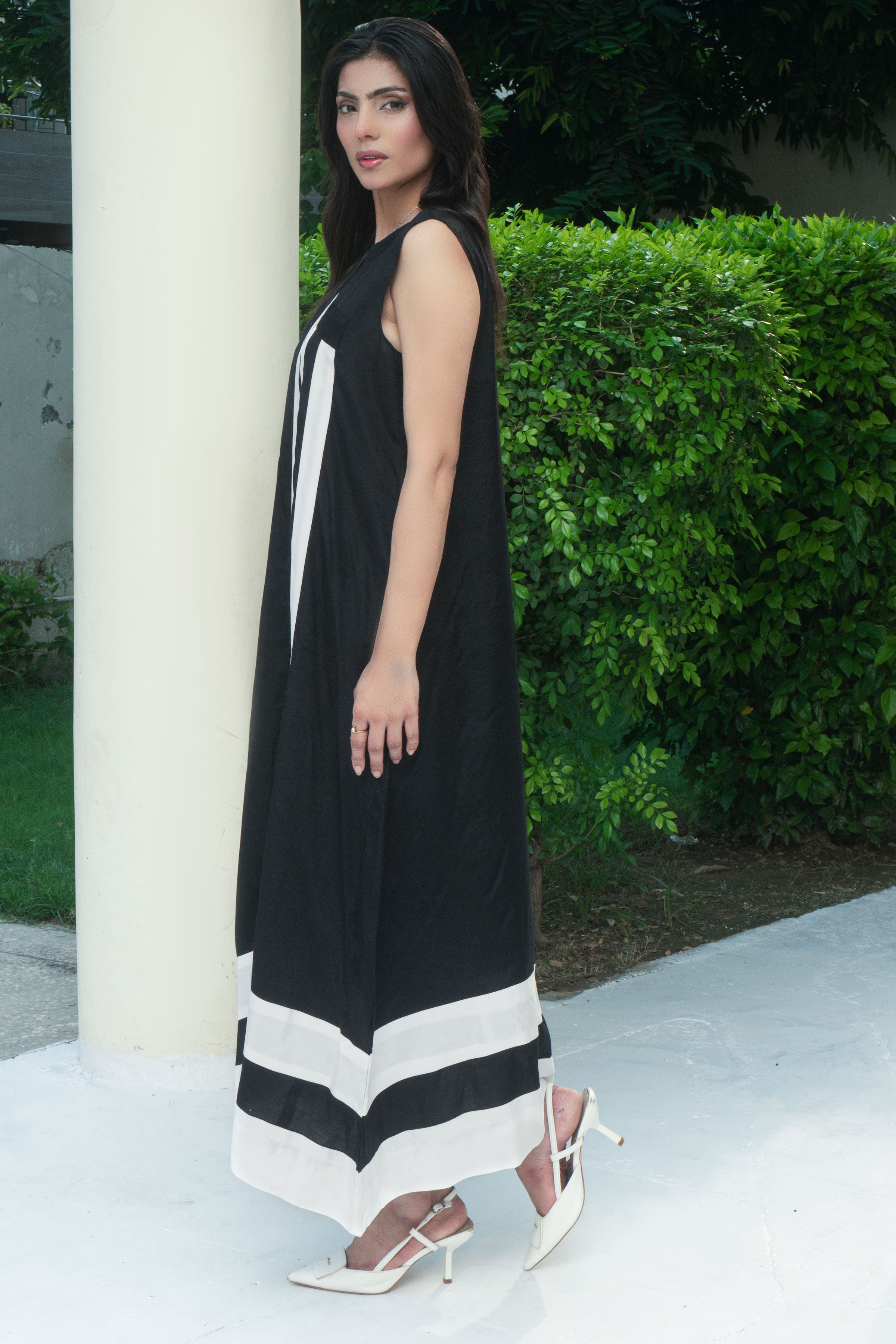 Black and White blended silk Airline Sleeve less shirt