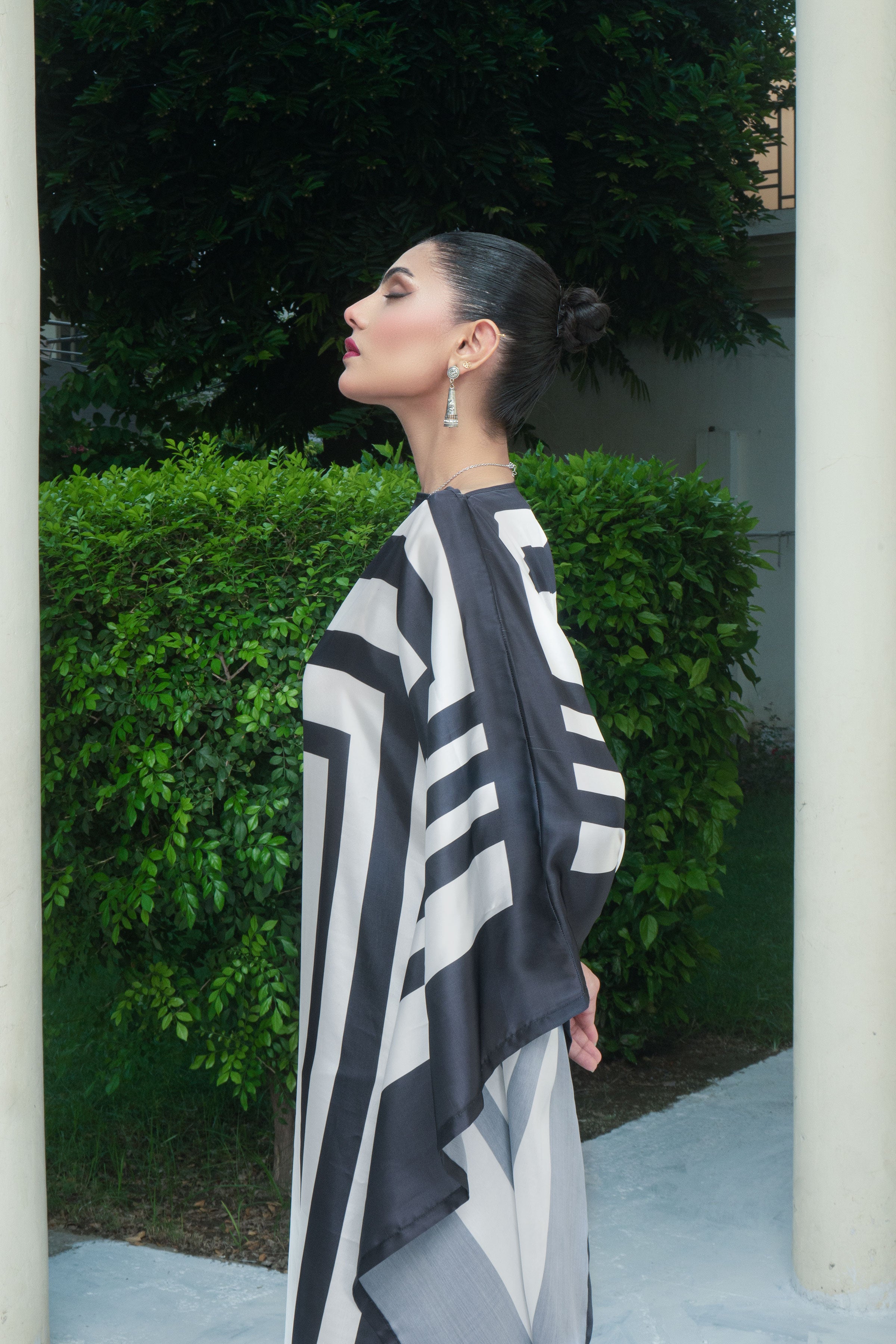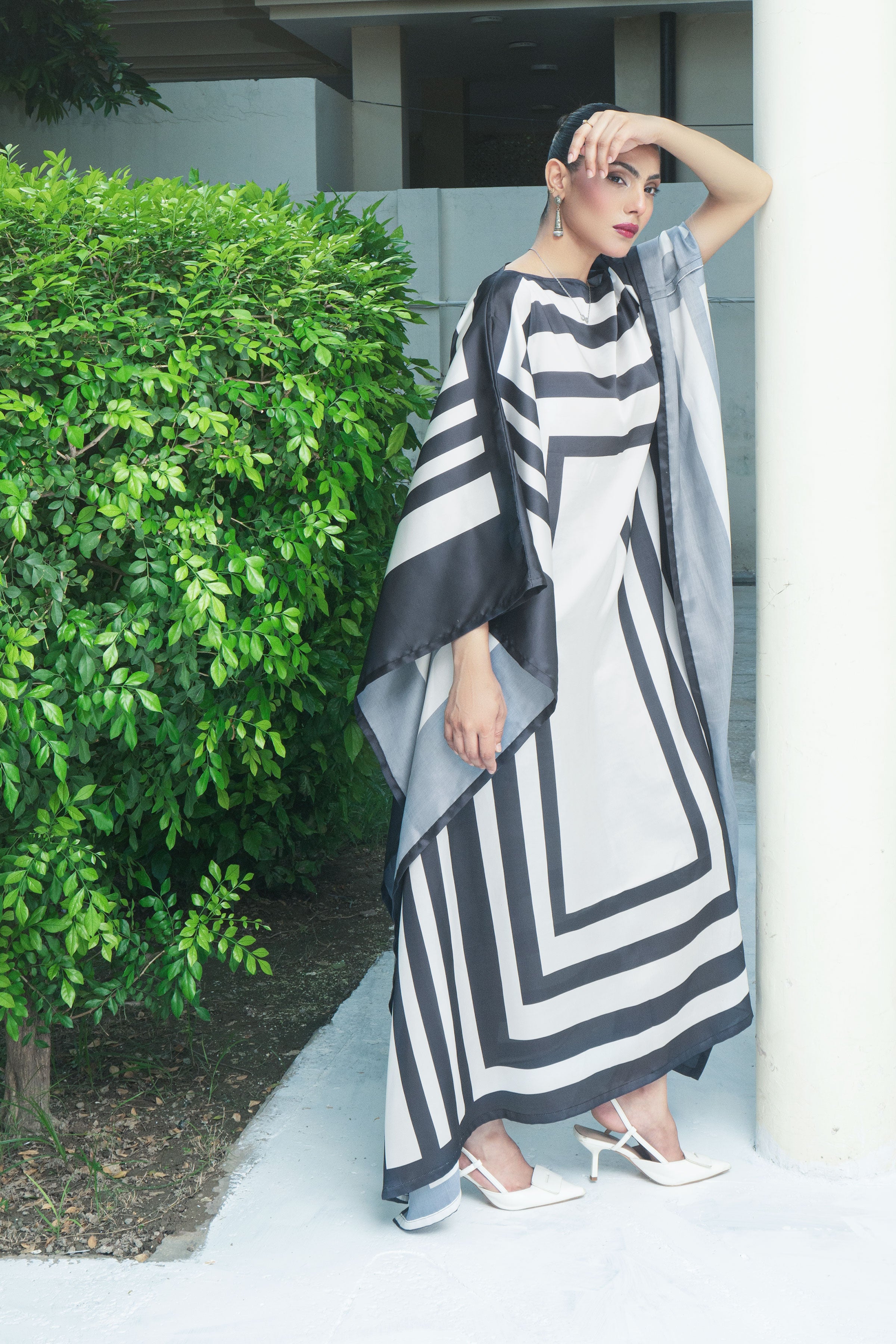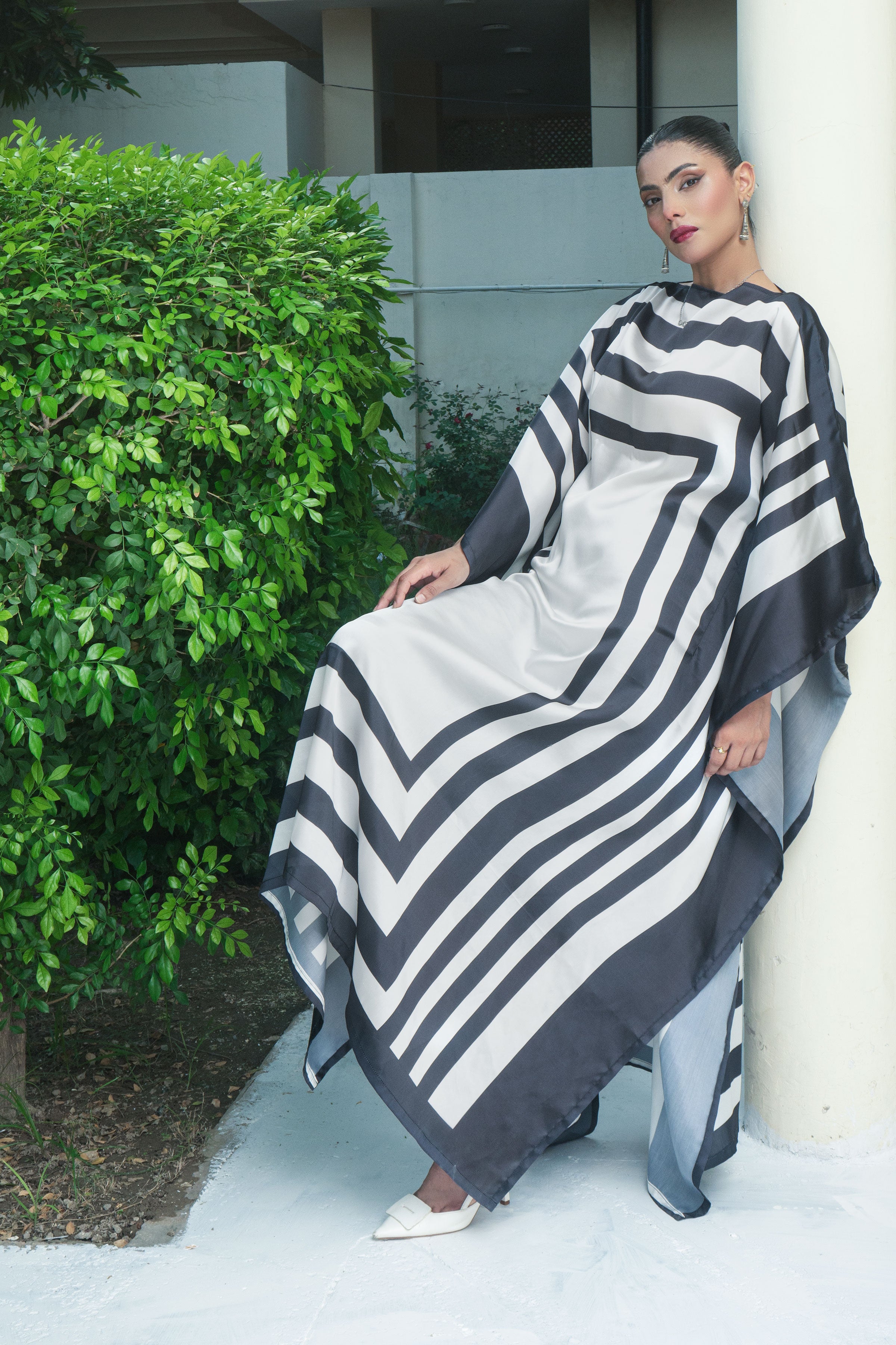 Increase quantity for Black and white Silk Digitital Printed Kaftan