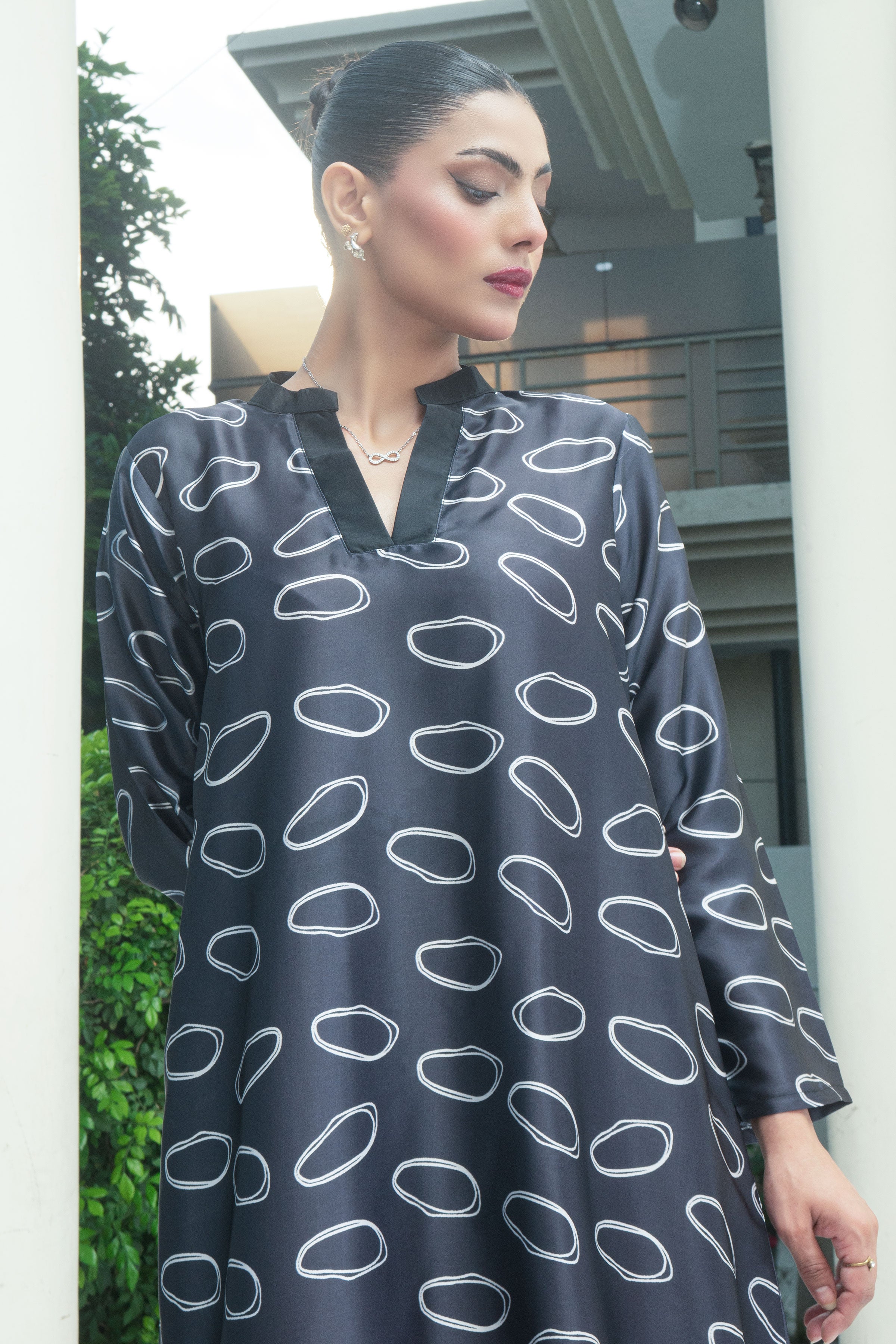 Decrease quantity for Black Silk Digital Printed long Shirt