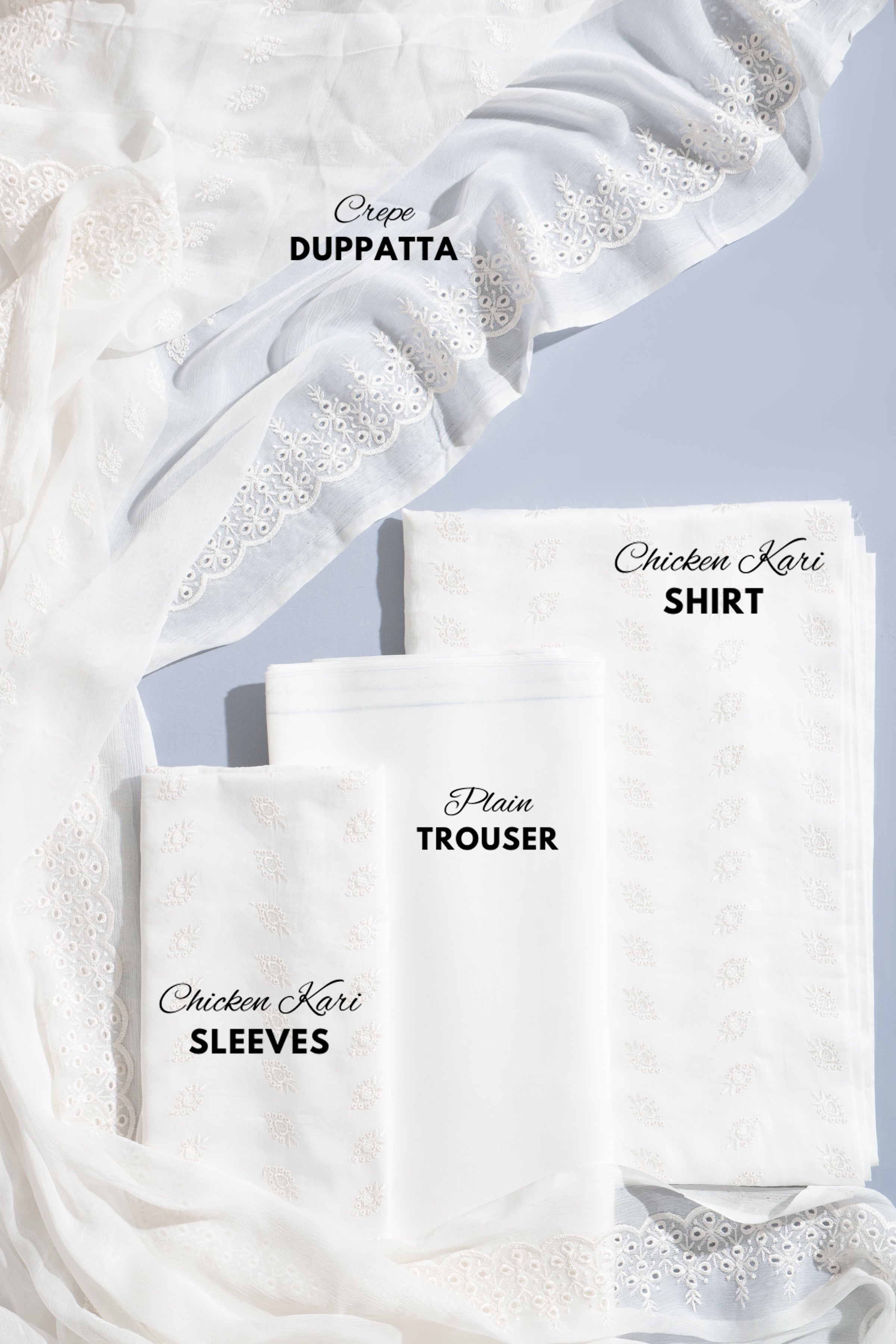 100% cotton 3-piece suit, featuring delicate Chicken Karhi embroidery for a touch of traditional charm. Perfect for beating the heat while looking fabulous!